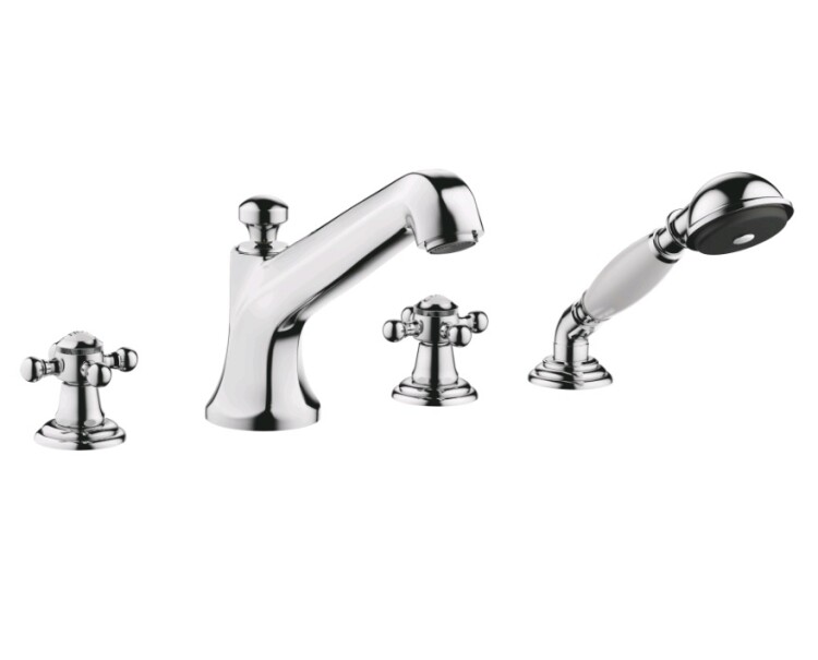 Смеситель для ванны и душа, Dornbracht, Madison, тип открывания воды-вентильный, тип регулирования воды-керамическая кран-букса, монтаж-на борт ванны, отверстия для монтажа-4, вынос излива, мм-225, в комплекте-ручной душ вытяжной, тип струи-compact rain, ручка-белый фарфор, металлический душевой шланг,мм- 1750, автоматическое переключение ванна/душ, внутренняя часть-необходимо заказать, цвет-хром Смеситель для ванны и душа, Dornbracht, Madison, цвет-хром