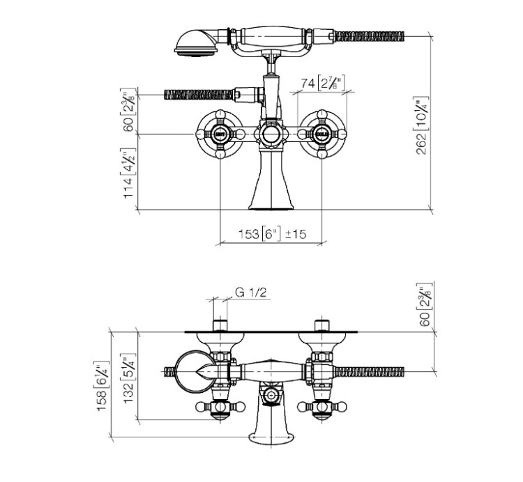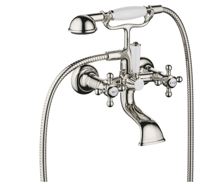 Смеситель для ванны и душа, Dornbracht, Madison, тип открывания воды-вентильный, тип регулирования воды-керамическая кран-букса, монтаж-настенный, отверстия для монтажа-2, вынос излива, мм-160, в комплекте-ручной душ, тип струи-compact rain, ручка-белый фарфор. держатель для душа, поворотный переключатель ванна/душ, металлический душевой шланг,мм-1250, присоединение 1/2“, цвет-платина Смеситель для ванны и душа, Dornbracht, Madison, цвет-платина