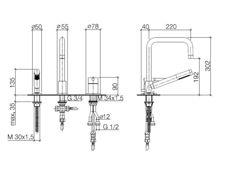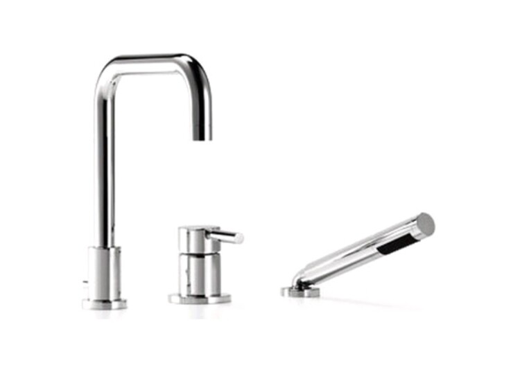 Смеситель для ванны и душа, Dornbracht, Meta, тип открывания воды-однорычажный, тип установки-на борту ванны/край плитки, отверстия для монтажа-4, вынос излива, мм-220, тип излива-поворотный, цвет-хром, комплектация- ручной душ, автоматический переключатель, шланг Смеситель для ванны и душа, Dornbracht, Meta, цвет-хром