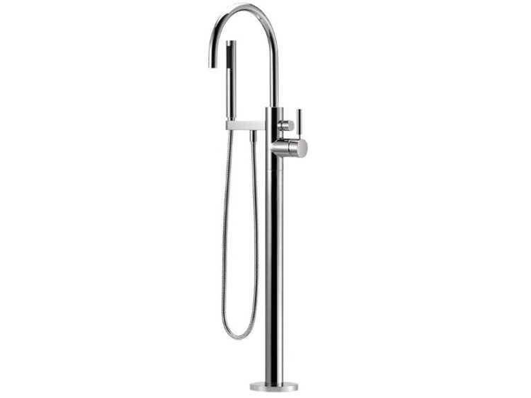 Смеситель для ванны и душа, Dornbracht, Meta, тип открывания воды-однорычажный, тип установки-напольный, отверстия для монтажа-1, вынос излива, мм-281, внутренняя часть-необходимо заказать, цвет-хром, комплектация: ручной душ, шланг, держатель для ручного душа Смеситель для ванны и душа, Dornbracht, Meta, цвет-хром