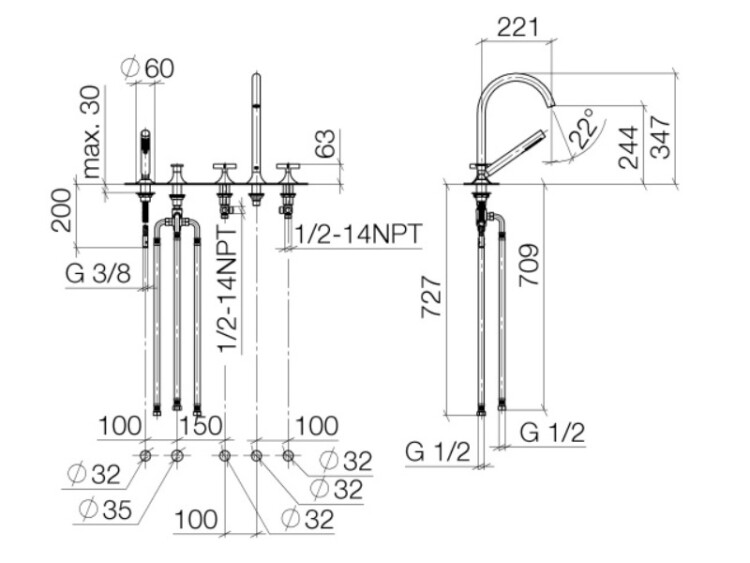 Смеситель для ванны и душа, Dornbracht, Vaia, тип открывания воды-двухвентильный, тип установки-на борт ванны, отверстия для монтажа-5, вынос излива, мм-220, цвет-Dark Platinum matt, комплектация-выдвижной ручной душ, форма душевой лейки-цилиндрическая, металлический душевой шланг,мм-1750, переключатель, автоматическое переключение ванна/душ Смеситель для ванны и душа, Dornbracht, Vaia, цвет-Dark Platinum matt