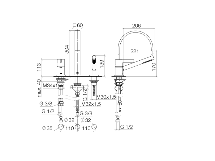 Смеситель для ванны, Dornbracht, MEM, тип открывания воды-однорычажный, тип установки-на борту ванны/край плитки, отверстия для монтажа-3, вынос излива, мм-220, внутренняя часть-необходимо заказать, цвет-Dark Platinum matt, комплектация-автоматическое переключение ванна/душ, вытяжной ручной душ, металлический шланг,мм-2250, держатель ручного душа Смеситель для ванны, Dornbracht, MEM, цвет-Dark Platinum matt