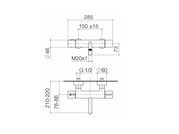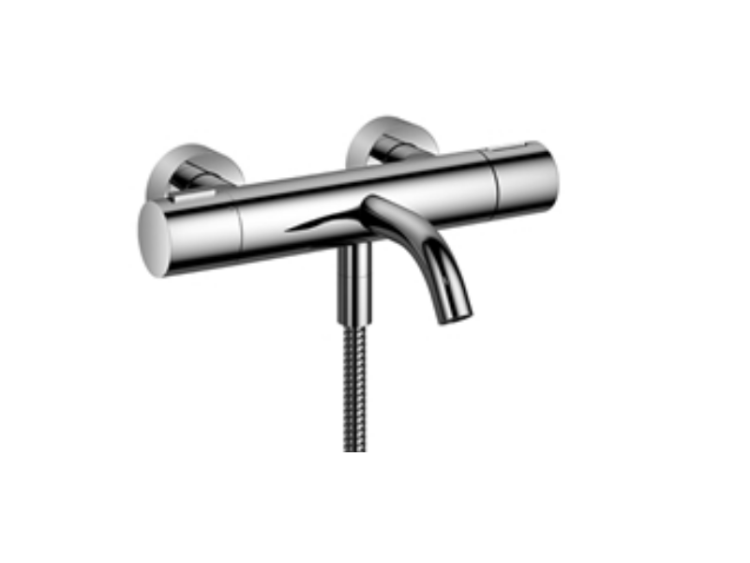 Смеситель для ванны, Dornbracht, Meta, тип регулирования воды-термостатический картридж, тип установки-настенный, отверстия для монтажа-2, вынос излива, мм-210, цвет-хром, поворотный переключатель с регулированием расхода и функцией запирания, отвод для душа 3/8", присоединение 1/2" Смеситель для ванны, Dornbracht, Meta, цвет-хром