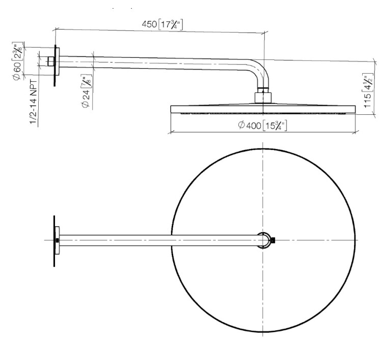 Верхний душ, Dornbracht, Specific, тип установки-настенный, размер душевого диска, мм-400*400, форма-круглая, количество режимов-1, тип струи-дождь (Rain), держатель-в комплекте, размер держателя, мм-450, цвет-латунь темная матовая (Dark Brass Brushed) Верхний душ, Dornbracht, Specific, 400*400, цвет-латунь темная матовая (Dark Brass Brushed)