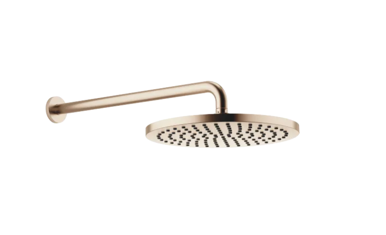 Верхний душ, Dornbracht, Tara, тип установки-настенный, ширина, мм-300, глубина, мм-300, высота, мм-115, форма-круглая, количество режимов-1, тип струи-дождь, с системой защиты от известковых отложений, розетка диаметр,мм-60, присоединение 1/2", держатель-есть, размер держателя-450, цвет-Light Gold сатинированный Верхний душ, Dornbracht, Tara, шгв 300*300*115, цвет-Light Gold сатинированный