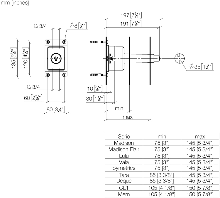 Внутрення часть, Dornbracht, назначение-для вентиля, стандарт подвода воды-3/4", не окрашен, мин. глубина установки-85 мм, макс. глубина установки-145 мм Внутрення часть, Dornbracht, назначение-для вентиля, не окрашен
