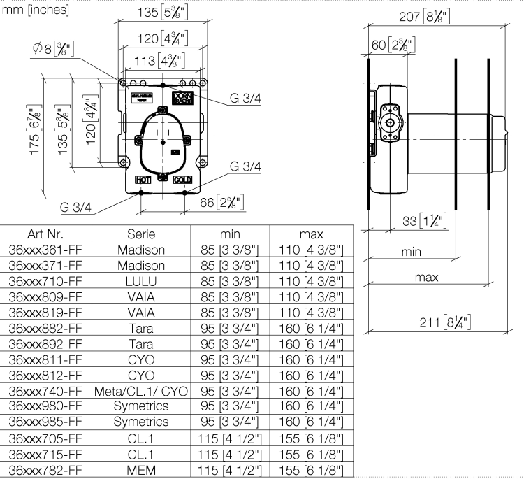 Внутрення часть, Dornbracht, назначение-смеситель для душа, стандарт подвода воды-3/4", без регулирования расхода Внутрення часть, Dornbracht, назначение-смеситель для душа
