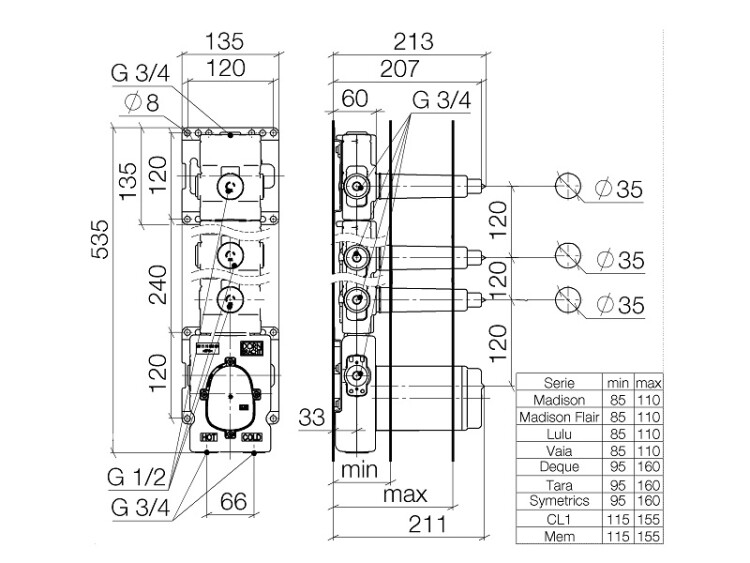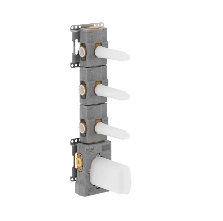 Внутренняя часть, Dornbracht, xTool, назначение-для ванны и душа, стандарт подвода воды-1/2", комплектация-2 предохранителя от обратного потока, корпус для скрытого монтажа, материал: DR-латунь, присоединение – внутренняя резьба 3/4" холодное/горячее, отвод - внутренняя резьба 1/2" для дополнительных вентилей, отвод влево/вправо на выбор - внутренняя резьба 1/2", отвод влево/вправо/вверх на выбор - внутренняя резьба 1/2", гильза с возможностью укорочения, керамический картридж 1/2", со шпинделем с возможностью укорочения, термостатный картридж 3/4" с грязеулавливающим фильтром, блок из стиропора, защитная манжета от проникновения воды, необработанный защитный кожух, звукоизоляция интегрирована, расстояние между осями 120 мм Внутренняя часть, Dornbracht, Универсальная, назначение-для ванны и душа
