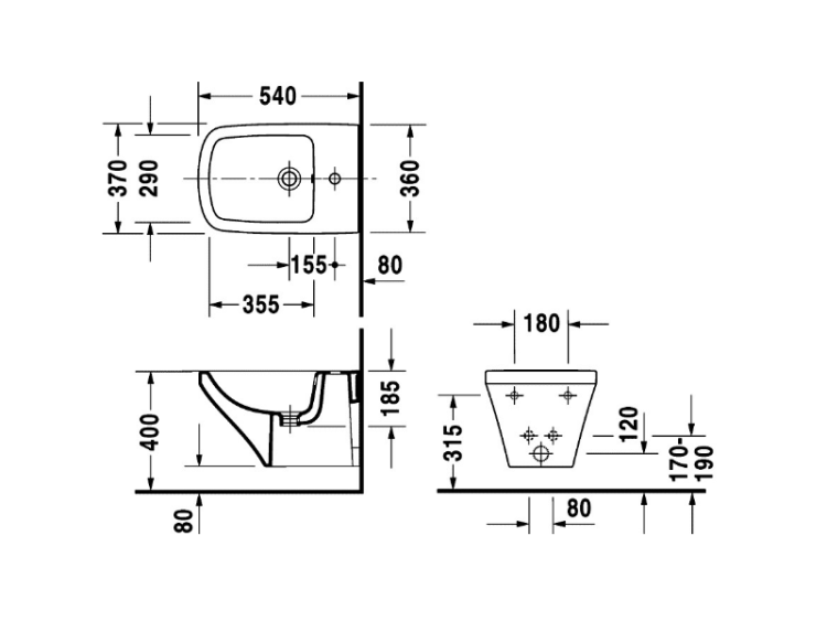 Биде, Duravit, Durastyle, тип установки-подвесной, ширина, мм-370, глубина, мм-540, высота, мм-320, форма чаши-прямоугольная, отверстия для смесителя-1, материал-керамика, цвет-белый, с переливом Биде, Duravit, Durastyle, подвесной, шгв 370*540*320, цвет-белый