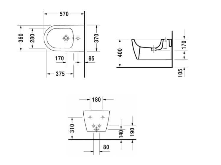 Биде, Duravit, ME by Starck, тип установки-подвесной, ширина, мм-370, глубина, мм-570, форма чаши-овальная, отверстия для смесителя-1, крепления в комплекте, цвет-белый матовый, с переливом, с плоскостью под смеситель Биде, Duravit, ME by Starck, подвесной, шг 370*570, цвет-белый матовый