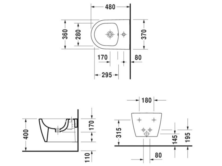 Биде, Duravit, ME by Starck, компакт, тип установки-подвесной, ширина, мм-370, глубина, мм-480, высота, мм-290, форма чаши-овальная, отверстия для смесителя-1, материал-керамика, крепления в комплекте, цвет-белый, с переливом, с плоскостью под смеситель Биде, Duravit, ME by Starck, подвесной, шгв 370*480*290, цвет-белый