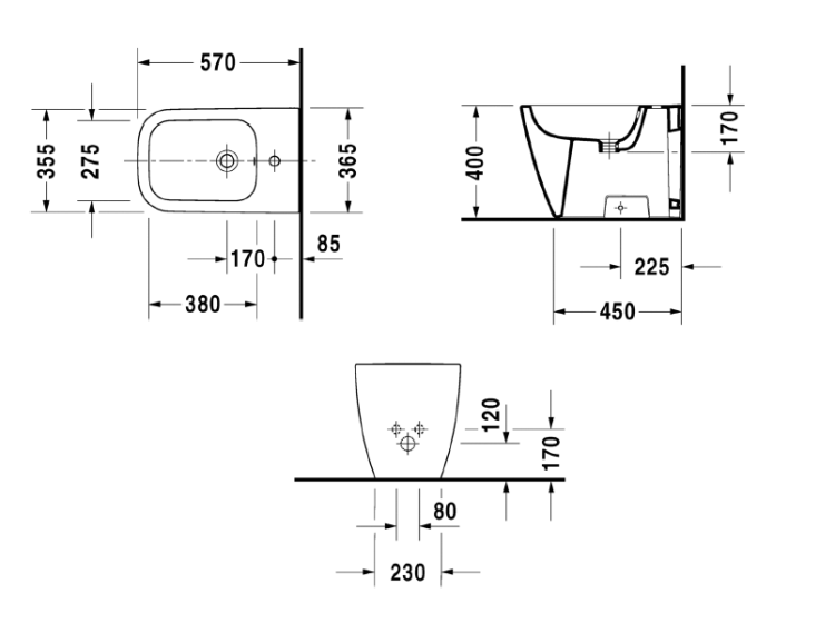 Биде, Duravit, Happy D.2, ширина, мм-365, глубина, мм-570, высота, мм-400, тип установки-напольный, форма чаши-прямоугольная, отверстия для смесителя-одно, материал-керамика, крепёж-есть, цвет-белый Биде напольное, Duravit, Happy D.2, шгв 365*570*400, цвет-белый