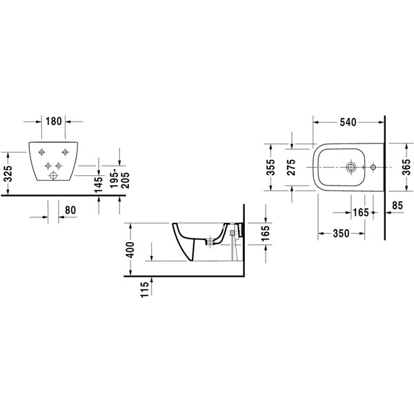 Биде, Duravit, Happy D.2, ширина, мм-355, глубина, мм-540, высота, мм-285, тип установки-подвесной, форма чаши-овальная, отверстия для смесителя-одно, материал-керамика, крепеж-есть, цвет-белый Биде подвесное, Duravit, Happy D.2, шгв 355*540*285, цвет-белый