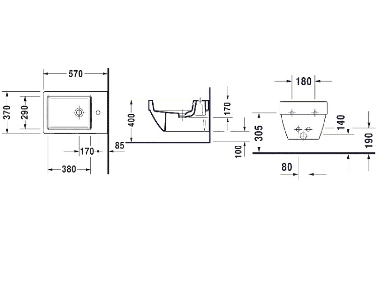Биде, Duravit, Vero Air, ширина, мм-370, глубина, мм-570, высота, мм-400, тип установки-подвесной, форма чаши-прямоугольная, отверстия для смесителя-одно, декор-без декора, материал-керамика, крепёж-есть, цвет-белый Биде подвесное, Duravit, Vero Air, шгв 370*570*400, цвет-белый