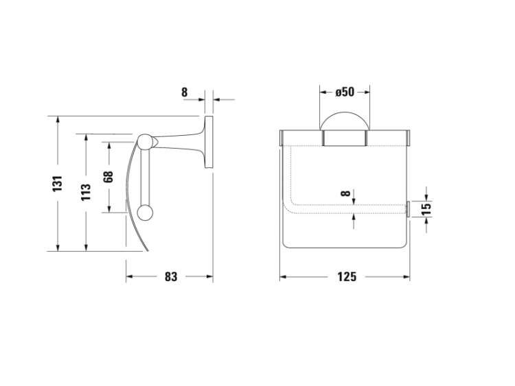 Бумагодержатель, Duravit, Starck T, с крышкой, ширина, мм-125, глубина, мм-83, высота, мм-131, тип установки-настенный, цвет-хром Бумагодержатель, Duravit, Starck T, шгв 125*83*131, цвет-хром
