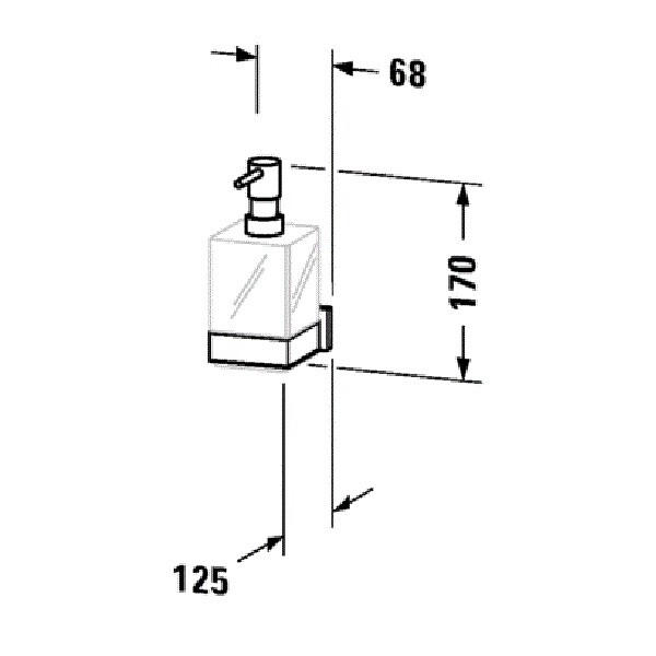 Дозатор для жидкого мыла, Duravit, Karree, одинарный, ширина, мм-68, глубина, мм-120, высота, мм-170, тип установки-настенный, материал колбы-матовое стекло, без декора, материал-металл, цвет-хром Дозатор для жидкого мыла, Duravit, Karree, шгв 68*120*170, цвет-хром