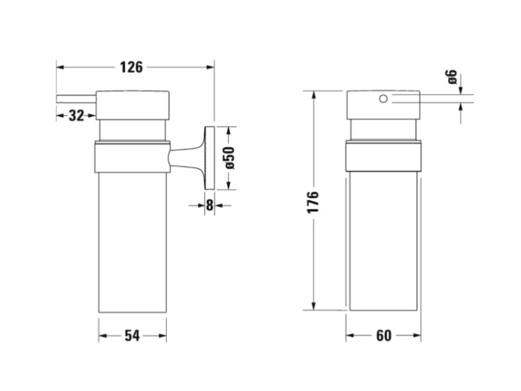 Дозатор для жидкого мыла, Duravit, Starck T, с держателем, ширина, мм-60, глубина, мм-126, высота, мм-176, тип установки-подвесной, материал колбы-матовое стекло, цвет-Black Matt Дозатор для жидкого мыла, Duravit, Starck T, шгв 60*126*176, цвет-Black Matt
