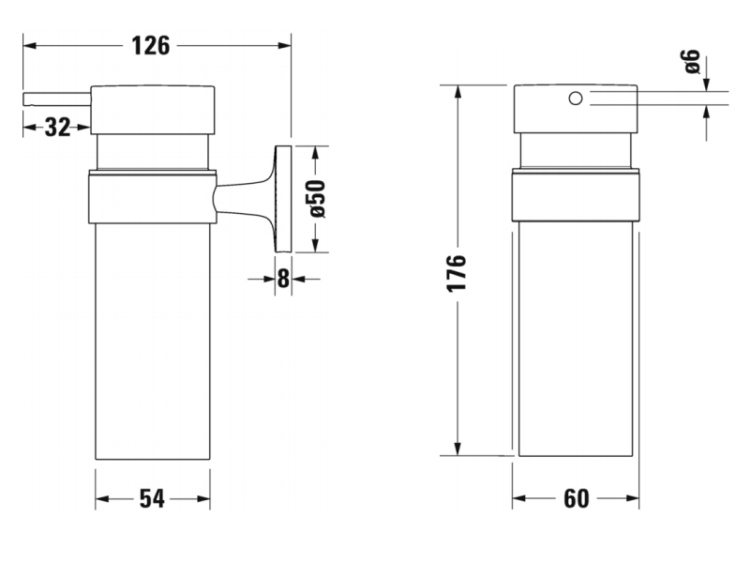 Дозатор для жидкого мыла, Duravit, Starck T, ширина, мм-60, глубина, мм-126, высота, мм-176, тип установки-настенный, материал колбы-матовое стекло, цвет-хром Дозатор для жидкого мыла, Duravit, Starck T, шгв 60*126*176, цвет-хром