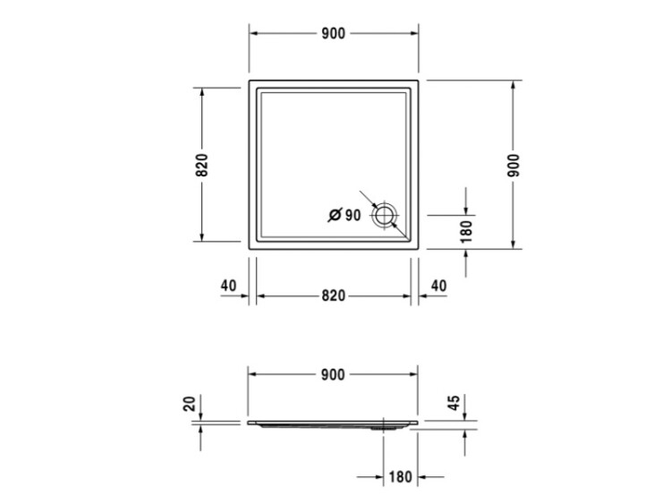 Душевой поддон, Duravit, Starck Slimline, ширина, мм-900, глубина, мм-900, высота, мм-45, форма-квадратная, сифон-необходимо заказать, диаметр слива, мм-90, материал-санитарный акрил, с антислипом, цвет-белый Душевой поддон, Duravit, Starck Slimline, шгв 900*900*45, с антислипом, цвет-белый