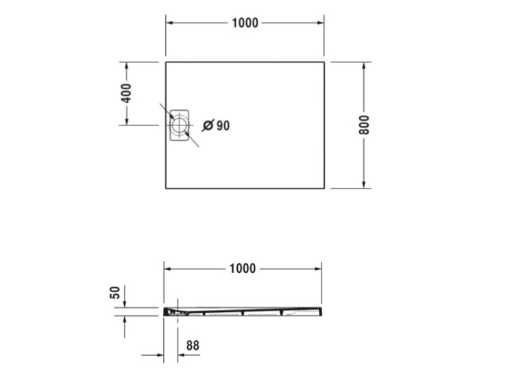 Душевой поддон, Duravit, Stonetto, ширина, мм-1000, глубина, мм-800, высота, мм-50, форма-прямоугольная, сифон-необходимо заказать, диаметр слива, мм-90, материал-DuraSolid Q, цвет-антрацит Душевой поддон, Duravit, Stonetto, шгв 1000*800*50, цвет-антрацит