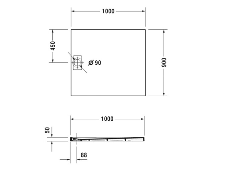 Душевой поддон, Duravit, Stonetto, ширина, мм-1000, глубина, мм-900, высота, мм-50, форма-прямоугольная, сифон-необходимо заказать, диаметр слива, мм-90, материал-DuraSolid Q, цвет-антрацит Душевой поддон, Duravit, Stonetto, шгв 1000*900*50, цвет-антрацит