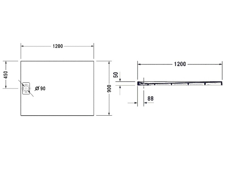 Душевой поддон, Duravit, Stonetto, ширина, мм-1200, глубина, мм-900, высота, мм-50, форма-прямоугольная, диаметр слива, мм-90, ножки-необходимо заказать, материал-DuraSolid Q, цвет-антрацит Душевой поддон, Duravit, Stonetto, шгв 1200*900*50, цвет-антрацит
