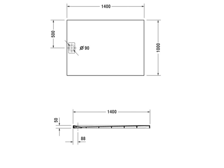 Душевой поддон, Duravit, Stonetto, ширина, мм-1400, глубина, мм-1000, высота, мм-50, форма-прямоугольная, сифон-необходимо заказать, диаметр слива, мм-90, ножки-необходимо заказать, материал-DuraSolid Q, цвет-антрацит Душевой поддон, Duravit, Stonetto, шгв 1400*1000*50, цвет-антрацит