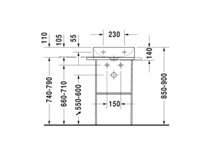 Консоль, Duravit, DuraSquare, для раковины, ширина, мм-516, глубина, мм-333, высота, мм-740*790, регулировка по высоте + 50 мм, тип установки-напольный, крепления в комплекте, материал-металл, цвет-черный матовый, полотенцедержатель встраиваемый-справа/слева Консоль, Duravit, DuraSquare, шг 516*333*740*790, цвет-черный матовый