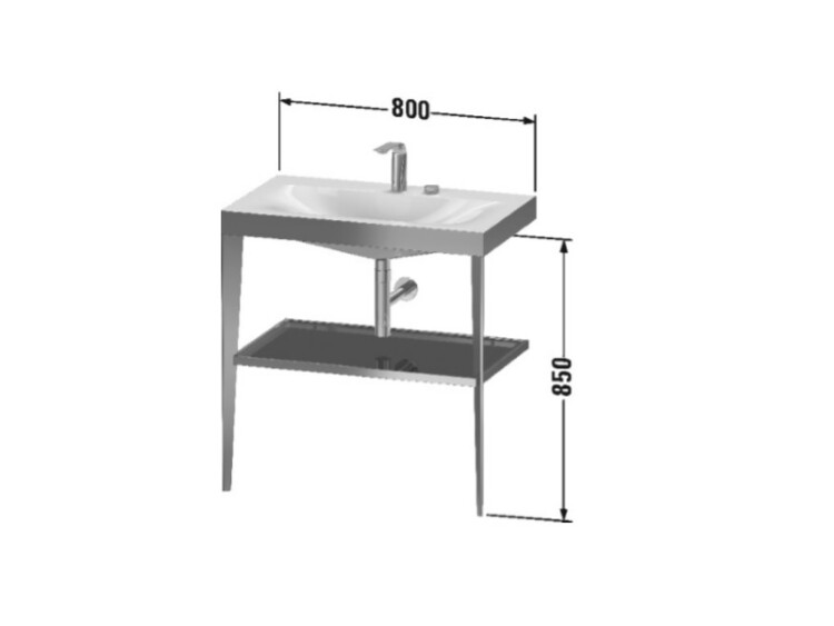 Консоль, Duravit, XViu, ширина, мм-800, глубина, мм-480, высота, мм-850, тип установки-напольный, со встроенной регулировкой высоты, материал-металл, с раковиной, без перелива, с 2 отверстиями под смеситель, стеклянные вкладки- безопасное стекло, в цвете-Black, с алюминиевым обрамлением с четырех сторон, в цвете-Black Matt, акриловая крышка в нижней части керамики, включая выпуск с керамической крышкой Консоль, Duravit, XViu, шгв 800*480*850, цвет-Black Matt/Black