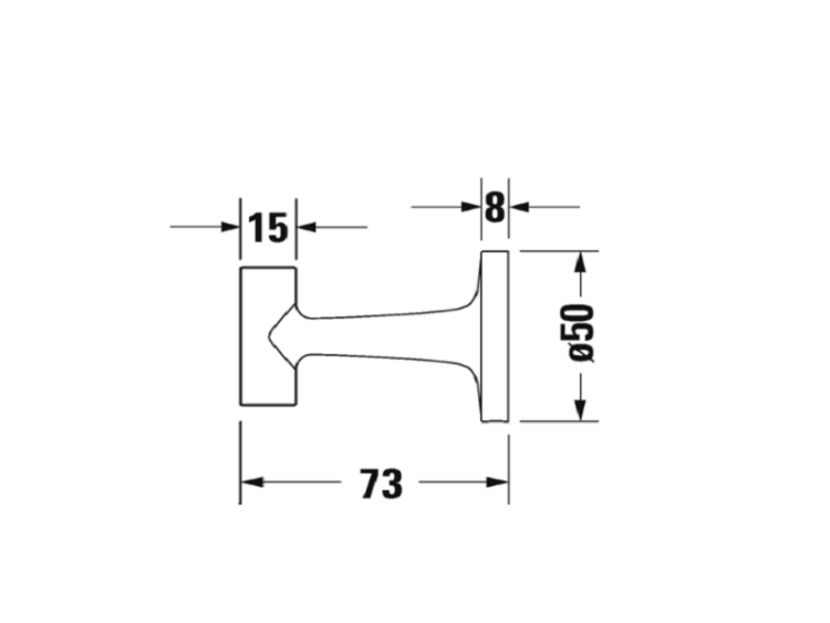 Крючок, Duravit, Starck T, одинарный, ширина, мм-50, глубина, мм-73, высота, мм-50, тип установки-настенный, цвет-хром Крючок, Duravit, Starck T, шгв 50*73*50, цвет-хром