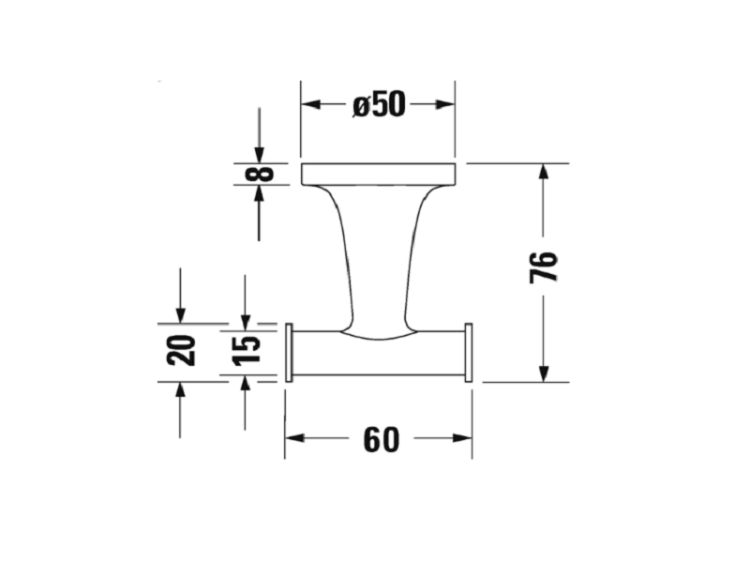 Крючок, Duravit, Starck T, двойной, ширина, мм-60, глубина, мм-76, высота, мм-50, тип установки-настенный, материал-латунь, цвет-хром Крючок, Duravit, Starck T, шгв 60*76*50, цвет-хром