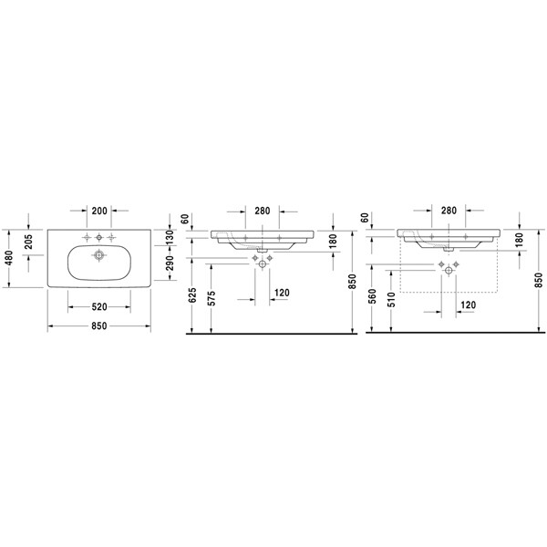 Раковина, Duravit, D-Code, ширина, мм-850, глубина, мм-480, высота, мм-180, тип установки-встраиваемый/подвесной, отверстия для смесителя-одно, перелив-есть, материал-керамика, крепёж-необходимо заказать, цвет-белый Раковина, Duravit, D-Code, шгв 850*480*180, цвет-белый