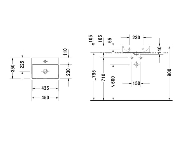 Раковина, Duravit, DuraSquare, ширина, мм-450, глубина, мм-390, высота, мм-140, материал-керамика, крепления в комплекте, цвет-белый, шлифованный, включая выпуск с керамической крышкой Раковина, Duravit, DuraSquare, шгв 450*390*140, цвет-белый