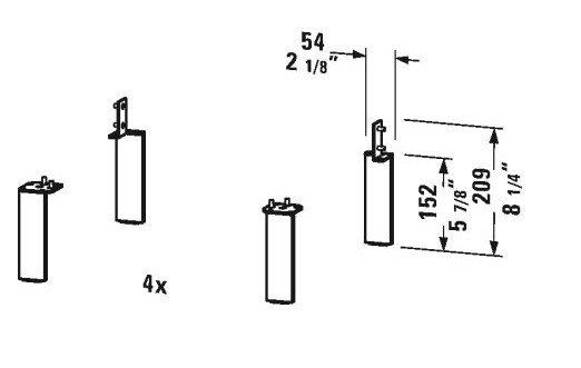 Ножки для тумбы, Duravit, Универсальная, ширина, мм-75, глубина, мм-65, высота, мм-152, цвет-алюминий матовый, в комплекте 4 шт Ножки для тумбы, Duravit, Универсальная, шгв 75*65*152, цвет-алюминий матовый