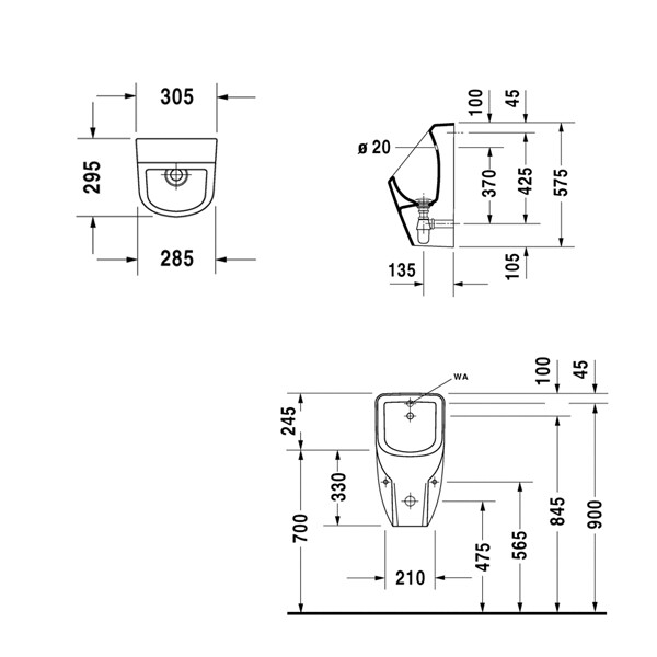 Писсуар, Duravit, D-Code, тип установки-подвесной, ширина, мм-305, глубина, мм-295, высота, мм-575, подвод воды-сзади, сифон-есть, декор-без декора, материал-керамика, крепёж-есть, цвет-белый Писсуар, Duravit, D-Code, шгв 305*295*575, цвет-белый