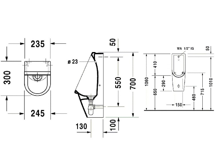 Писсуар, Duravit, Starck 3, тип установки-подвесной, ширина, мм-300, глубина, мм-245, высота, мм-700, подвод воды-сзади, декор-без декора, материал-керамика, крепёж-есть, цвет-белый Писсуар, Duravit, Starck 3, шгв 300*245*700, цвет-белый