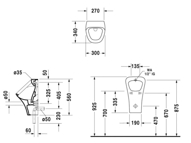 Писсуар, Duravit, Durastyle, тип установки-настенный, ширина, мм-300, глубина, мм-340, высота, мм-560, подвод воды-сзади, сифон-необходимо заказать, материал-керамика, вид грязеотталкивающего покрытия-WonderGliss, крепления в комплекте, цвет-белый, с вытяжкой, сток внутренний вертикальный или горизонтальный Писсуар, Duravit, Durastyle, шгв 300*340*560, WonderGliss, цвет-белый