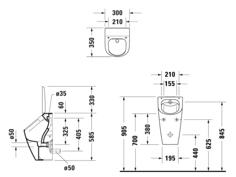 Писсуар, Duravit, ME by Starck, тип установки-настенный, ширина, мм-300, глубина, мм-350, высота, мм-585, подвод воды-сзади, смывное устройство-без смывного края, сифон-необходимо заказать, материал-керамика, крепления в комплекте, цвет-белый, с вытяжкой, сток горизонтальный, модель без "мушки" Писсуар, Duravit, ME by Starck, шгв 300*350*585, цвет-белый