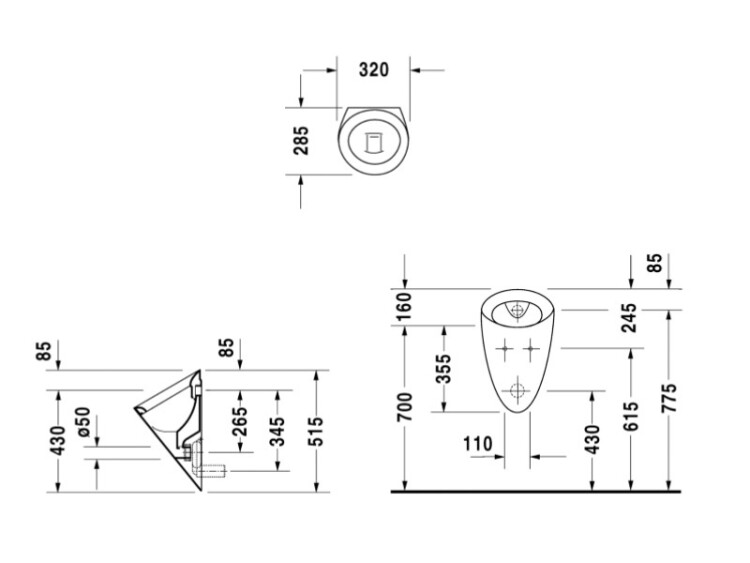 Писсуар, Duravit, Starck 1, тип установки-настенный, ширина, мм-320, глубина, мм-285, высота, мм-515, подвод воды-скрытый, сифон-необходимо заказать, материал-керамика, вид грязеотталкивающего покрытия-WonderGliss, слив-скрыт, с вытяжкой, крепления в комплекте, цвет-белый, без крышки Писсуар, Duravit, Starck 1, шгв 320*285*515, WonderGliss, цвет-белый