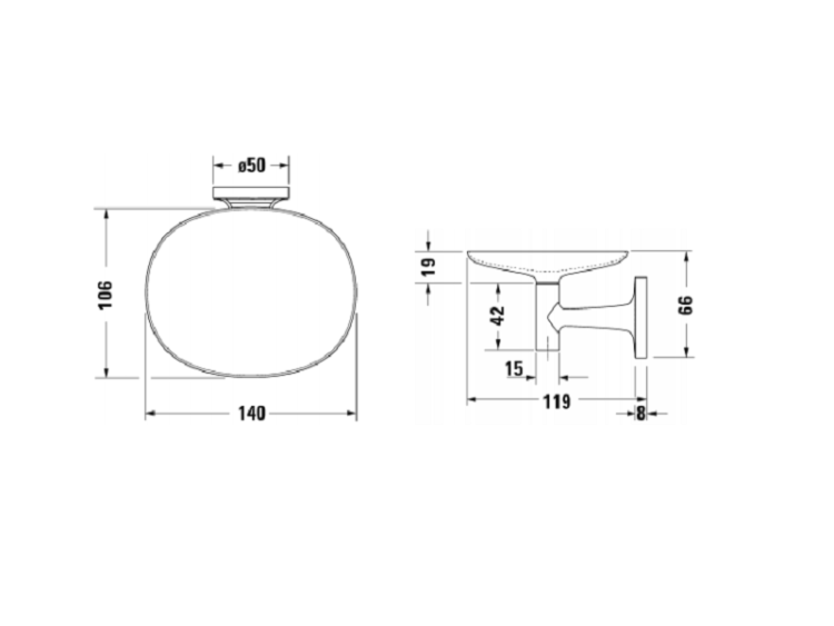 Мыльница, Duravit, Starck T, ширина, мм-140, глубина, мм-106, высота, мм-66, тип установки-настенный, материал мыльницы-стекло матовое, держатель-в комплекте, материал держателя-металл, цвет-хром Мыльница, Duravit, Starck T, шгв 140*106*66, цвет-хром