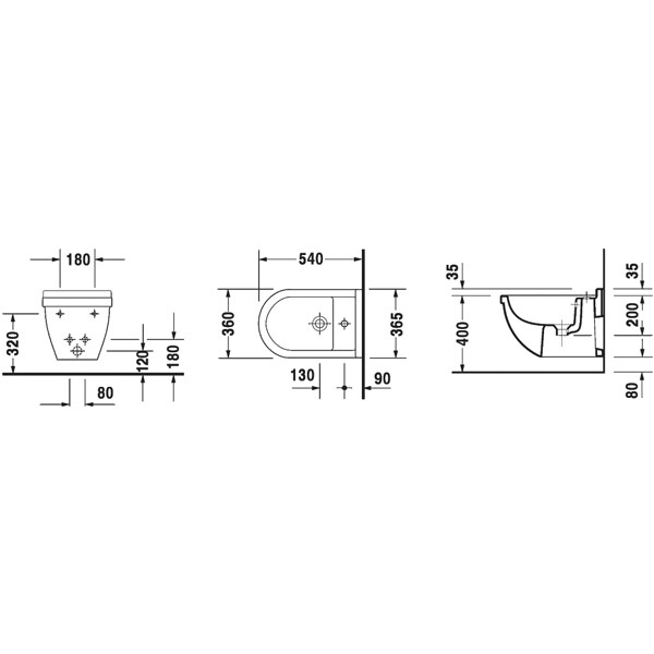 Биде, Duravit, Starck 3, ширина, мм-365, глубина, мм-540, высота, мм-355, тип установки-подвесной, форма чаши-овальная, отверстия для смесителя-одно, материал-керамика, крепеж-необходимо заказать, цвет-белый Биде подвесное, Duravit, Starck 3, шгв 365*540*355, цвет-белый