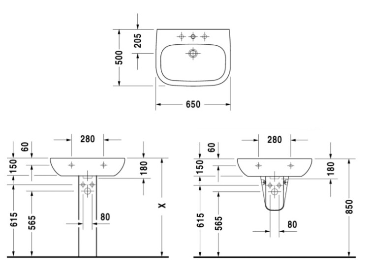 Раковина, Duravit, D-Code, ширина, мм-650, глубина, мм-500, высота, мм-180, отверстия для смесителя-1, перелив-есть, тип перелива-открытый, материал-керамика, цвет-белый, глазуровка-снизу Раковина, Duravit, D-Code, шгв 650*500*180, отверстия для смесителя-1, цвет-белый (стар.арт 2310650000 )