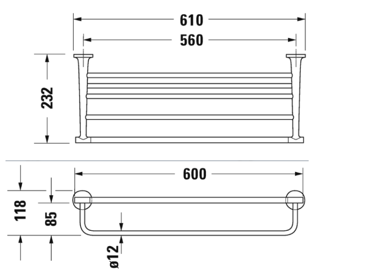 Полочка для душевых полотенец, Duravit, Starck T, решетка, ширина, мм-610, глубина, мм-232, высота, мм-118, тип установки-настенный, цвет-хром Полочка для душевых полотенец, Duravit, Starck T, решетка, цвет-хром