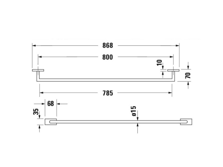 Полотенцедержатель, Duravit, Karree, одинарный, неподвижный, ширина, мм-800, глубина, мм-70, высота, мм-35, тип установки-настенный, материал-металл, цвет-хром Полотенцедержатель, Duravit, Karree, шгв 800*70*35, цвет-хром