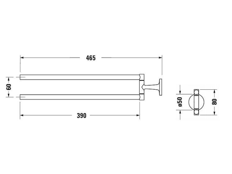 Полотенцедержатель, Duravit, Starck T, двойной, ширина, мм-465, высота, мм-60, тип установки-настенный, цвет-Black Matt, подвижный Полотенцедержатель, Duravit, Starck T, шв 465*60, цвет-Black Matt