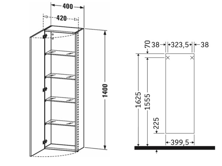 Шкаф-пенал, Duravit, Durastyle, ширина, мм-400, глубина, мм-240, высота, мм-1400, тип установки-подвесной, дверцы-есть, открывание дверей-распашное, петли-справа, материал корпуса-ДСП меламиновая смола, материал фасада-ДСП меламиновая смола, цвет-белый матовый, в комплекте-4 стеклянные полки Шкаф-пенал, Duravit, Durastyle, шгв 400*240*1400, петли-справа, цвет-белый матовый