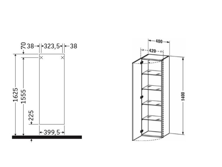 Шкаф-пенал, Duravit, Durastyle, ширина, мм-400, глубина, мм-360, высота, мм-1400, тип установки-подвесной, дверцы-есть, открывание дверей-распашное, петли-справа, материал корпуса-ДСП меламиновая смола, материал фасада-ДСП меламиновая смола, цвет-белый глянцевый, комплектация-4 стеклянные полки Шкаф-пенал, Duravit, Durastyle, шгв 400*360*1400, петли-справа, цвет-белый глянцевый
