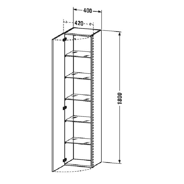 Шкаф-пенал, Duravit, Durastyle, ширина, мм-400, глубина, мм-360, высота, мм-1800, тип установки-подвесной, дверцы-есть, открывание дверей-распашное, петли-слева, комплектация-5 стеклянных полок, материал корпуса-высокоплотная трехслойная ДСП, цвет корпуса-орех натуральный, материал фасада-высокоплотная трехслойная ДСП, цвет-орех натуральный, декор-без декора Шкаф-пенал, Duravit, Durastyle, шгв 400*360*1800, цвет-орех натуральный