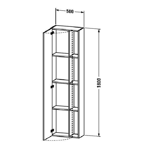 Шкаф-пенал, Duravit, Durastyle, ширина, мм-500, глубина, мм-240, высота, мм-1800, тип установки-подвесной, дверцы-есть, открывание дверей-распашное, петли-справа, комплектация-3 полки, материал корпуса-высокоплотная трехслойная ДСП, цвет корпуса-белый глянцевый, материал фасада-высокоплотная трехслойная ДСП, цвет-белый глянцевый, декор-без декора Шкаф-пенал, Duravit, Durastyle, шгв 500*240*1800, цвет-белый глянцевый
