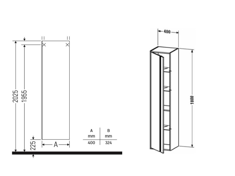 Шкаф-пенал, Duravit, Ketho, ширина, мм-400, глубина, мм-360, высота, мм-1800, тип установки-подвесной, дверцы-есть, открывание дверей-распашное, петли-слева, материал корпуса-ДСП меламиновая смола, материал фасада-ДСП меламиновая смола, цвет-базальт матовый, комплектация-3 стеклянные полки, 1 деревянная полка Шкаф-пенал, Duravit, Ketho, шгв 400*360*1800, петли-слева, цвет-базальт матовый